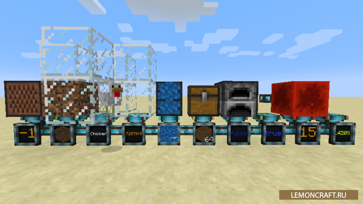 1. Ридеры - считывают различную информацию, сколько игроков на сервере, что за животное стоит перед устройством, типы блоков и др. 2. Райтеры - выводят определенную информацию, такую как звуки, эффекты и другое. 3. Мониторы, выводят переменные, которые вы задали.